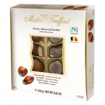 Maître Truffout Frutos do Mar 250gMAÎTRE TRUFFOUTcaixa de chocolate trufado bombons sortidos fruits de mer embalagem 250 gChocolatesBombons de Chocolate ao leite com recheio cremoso de avelã, formato ..