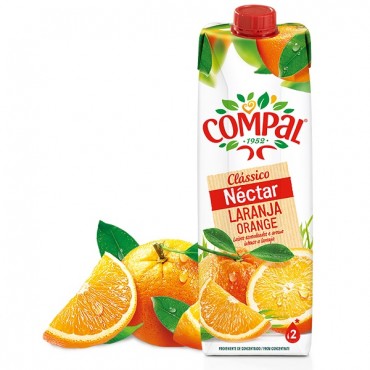 Compal Classico Laranja 1LCompal Clássico100% Sumo de Laranja embalagem 1 LitroCaracterísticasIngredientes/ComposiçãoSumo de laranja: à base de concentrado água açúcar polpa de laranja (0 7%) regulado..