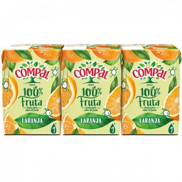 Compal Fruta Laranja 3x200mlCOMPAL Sumo 100% Fruta Laranja emlalagem 3 x 200 mlInformações de Marketing: Sumo 100% Fruta, nada para além da Fruta. Sem açúcares adicionados.CaracterísticasQuantidade L..