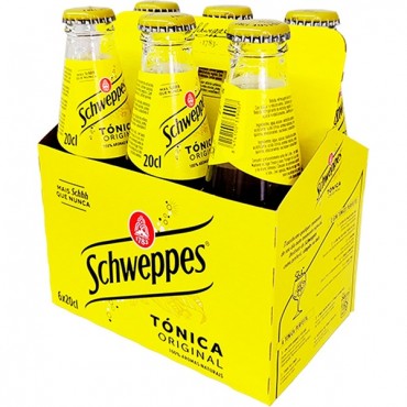 Schweppes Água Tónica 6x20clSchweppesÁgua Tónica Pack 6 unidades garrafa 20 clÁgua Tónica Original Pack 6 garrafa 20 clInformações de MarketingA autêntica. A primeira. Elaborada segundo a receita orig..