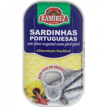 Ramirez Sardi Oleo Pica 125gRamirezSardinhas em Óleo Picante lata 125 gRamirez / Canned Food & SoupsRamirez Sardinhas em Óleo Vegetal Picante 125gDescrição:A sardinha em óleo vegetal picante prevê a i..