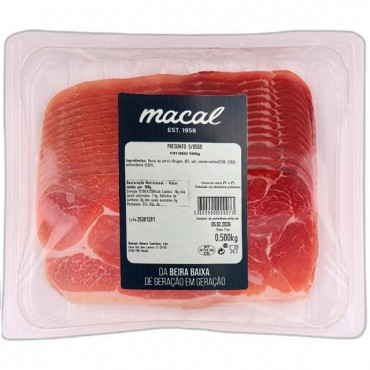Macal Presunto Fatiado 500gMACAL EST. 1958Macal Presunto sem Osso Fatiado embalagem 500 g* PRODUTO REFRIGERADO DE VENDA EXCLUSIVA LOJA FISICA NÃO ENVIAMOSInformação geralTeor em matéria gorda por 100 ..