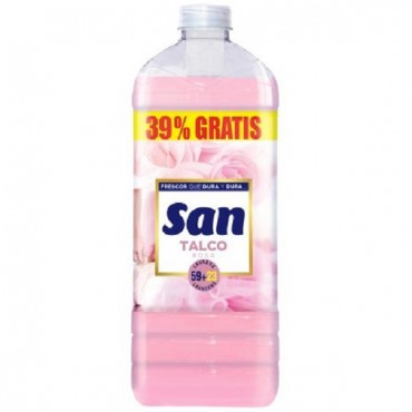 San Amaciador Talco 59+23DSanAmaciador de Roupas Talco Rosa embalagem (59+23 D) 1800 ml San Softener 1800 ml Talco Rosa (59+23 D) Fragrância FloralAmaciador Suave e Concentrado. San Talco Rosa trata e..