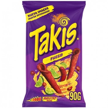 Takis Fuego 90gAperitivos Takis Fuego 90gTakis Fuego 90gVenda de Takis Fuego 90g, delicioso snack com sabor a malagueta e lima, marca Takis, para máquinas de venda automática e de impulso.DescriçãoTak..