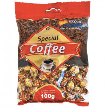 Coffee Rebucados Special 100gDROPS NAZARÉCoffee Rebucados Special embalage 100 gSpecial CoffeeRebuçado à base de açúcar e glucose, com sabor a café.O café com um sabor mais doce...CaracterísticasQuant..