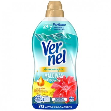Vernel Maldivas 70D 1,260LVERNELAmaciador Concentrado Maldivas Relajantes Aromaterapia 70 doses 1,260 LitrosInformações de Marketing: VERNEL AT MALDIVAS 70DCaracterísticasTipo de produto: Amaciador Co..