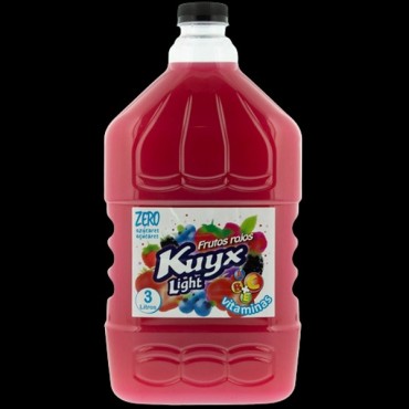 Kuyx Frutos Rojos Light 3LKUYX Bebida de Frutos Vermelhos Light embalagem 3 LitrosRefrigerante Kuyx sabor Frutos Vermelhos com vitaminas 3La unidadeO suco de Frutos Vermelhos Kuyx Light, em jarra de 3..