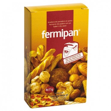 Fermento de Padeiro Fermipan Embalagem 44g 1Un.FermipanFermento de Padeiro embalagem 44 gInformação geralInformação geral Fermento de PadeiroIngredientes e alergénios: Levedura (Sacchromyces cerevisia..