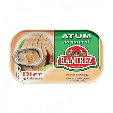 Ramirez Atum Natural 120gAtum ao Natural Ramirez 120 GCaracterísticasQuantidade Liquida: 0.12 KGIngredientes/ComposiçãoIngredientes: Atum água sal.Informações Nutricionais: Valores nutricionais médios..