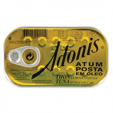 Adonis Atum Oleo 120gAdonis - Atum posta em óleoBRAND / MARCA: AdonisTYPE / TIPO: alumínio – aluminumDESIGNATION / DESIGNAÇÃO: Atum posta em óleoNET WEIGHT / PESO LIQUIDO: 125grMATERIALS / MATERIAL: ..