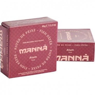 Manna Pate de Atum 65g 1Un.MANNÁManná Paté de Atum embalagem 65gMarca: MannáIngredientes: Atum (45%) (Thunnus obesus ou Thunnus albacares ou Katsuwonus pelamis), Óleo vegetal (girassol), Água, Flocos ..