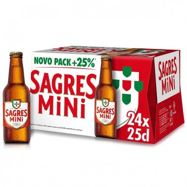 Sagres Cerveja Branca 30x25cl SAGRESCerveja com Álcool Mini embalagem 30 x 25 clDescrição: A cerveja Sagres é uma cerveja do estilo pilsener, com palato limpo e seco e carácter ligeiramente amargo com..
