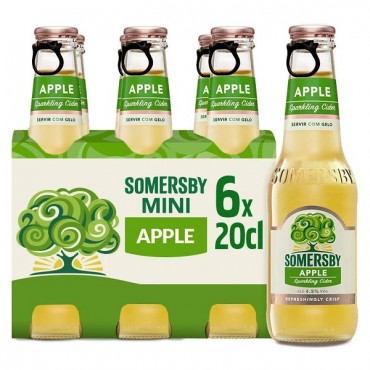 Sidra Somersby Maçã 6x20clSomersbySidra Mini sabor Maçã Pack 6 garrafa 20 clInformação geralInformação geral Outras com ÁlcoolQuantidade líquida: 1.2 LitrosPercentagem de álcool: 4.5%CaracterísticasQu..